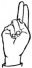 На ћирилици написано САНДРА ЂУДУРОВИЋ састоји се из 15 слова [?]. Исписано ћириличном једноручном азбуком за глувонеме: